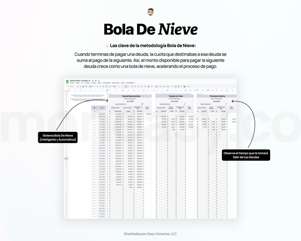 Es una estrategia eficaz para eliminar deudas. Comienza pagando la deuda más pequeña primero, mientras haces pagos mínimos en las demás. A medida que eliminas cada deuda, la cantidad que puedes dedicar a la siguiente aumenta, creando una ‘bola de nieve’ que acelera el proceso de pago.
